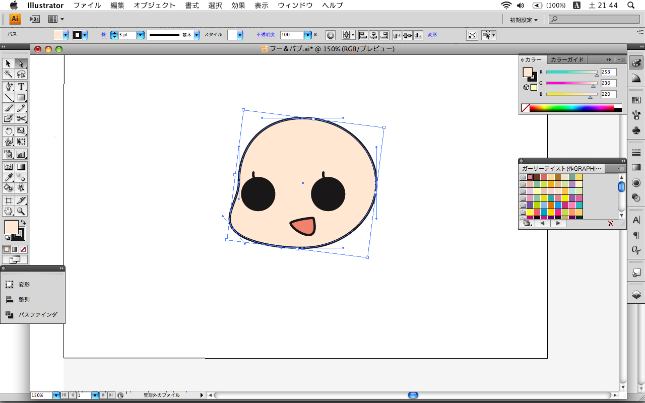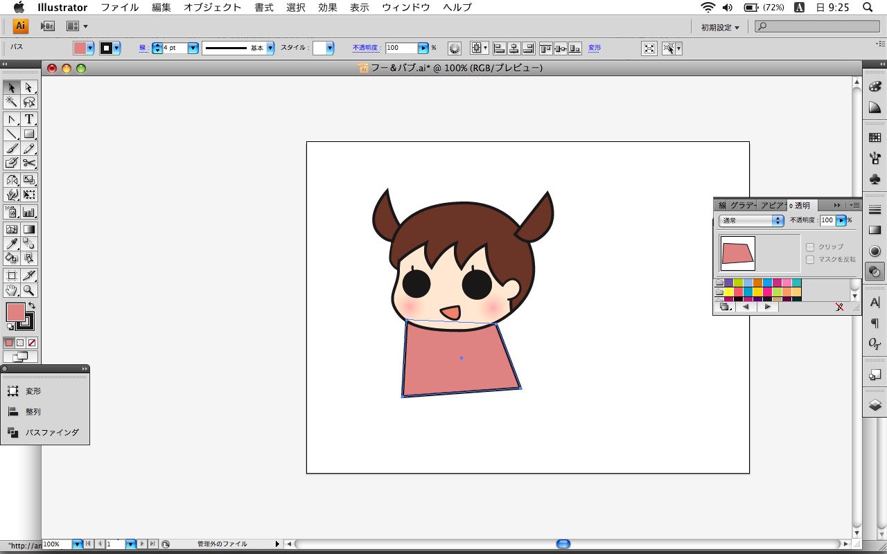 楕円形ツールで楕円を描いてからほっぺの部分にアンカーを増やすのが