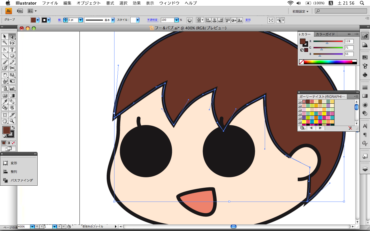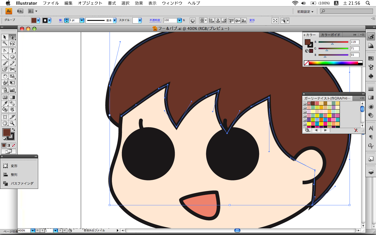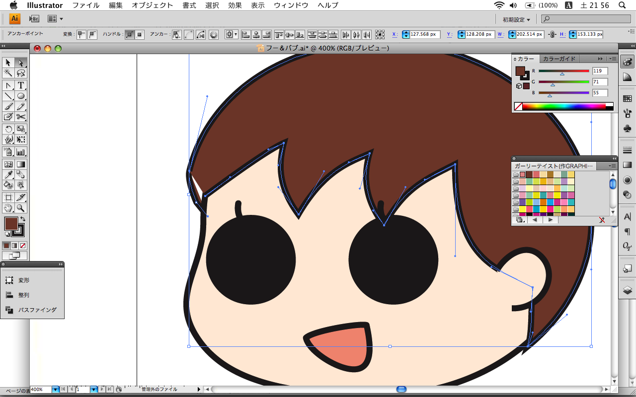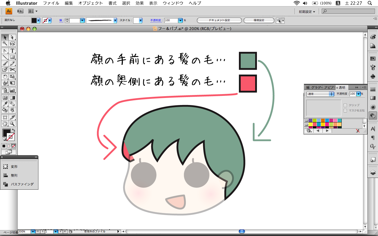 髪の毛が回り込んだりしないしこのような顔はベジエだと一番描き易いタイプ。