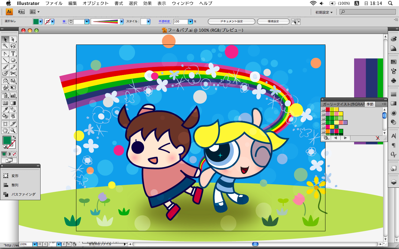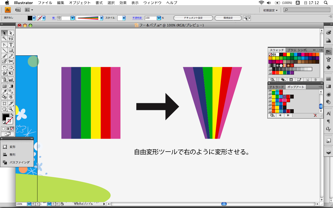 四角形で虹を描き、「自由変形ツール」で下の部分を狭く変形します。
