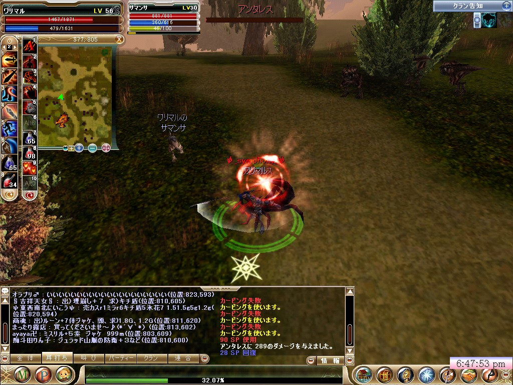 ゲーム 2007/09/30 アンタレスと激突 いや~・・・いつの事だったか忘れましたが最近だったような。 KOでアンタレス出たんです。モラドンで。このゲームでは 1日に1~2回ぐらいしか沸かないレアMOBなんですよね。 ↑(間違ってたらごめんなさい。でもそんぐらいの感覚です) しかも今までソロで倒した事なかったし昔ソロでつっこんで死にかけたので 倒せるかな~?とか思いながらMP吸収のハルバードで走り切り。 結果はノアとゴミアクセサリだけでした。ちくわぶ曰く 「アンタからはろくな物出た記憶がないw」 だそうだ。KO知らない人から聞いたら 「お前からろくな物出たことない」って読んでしまうかな?