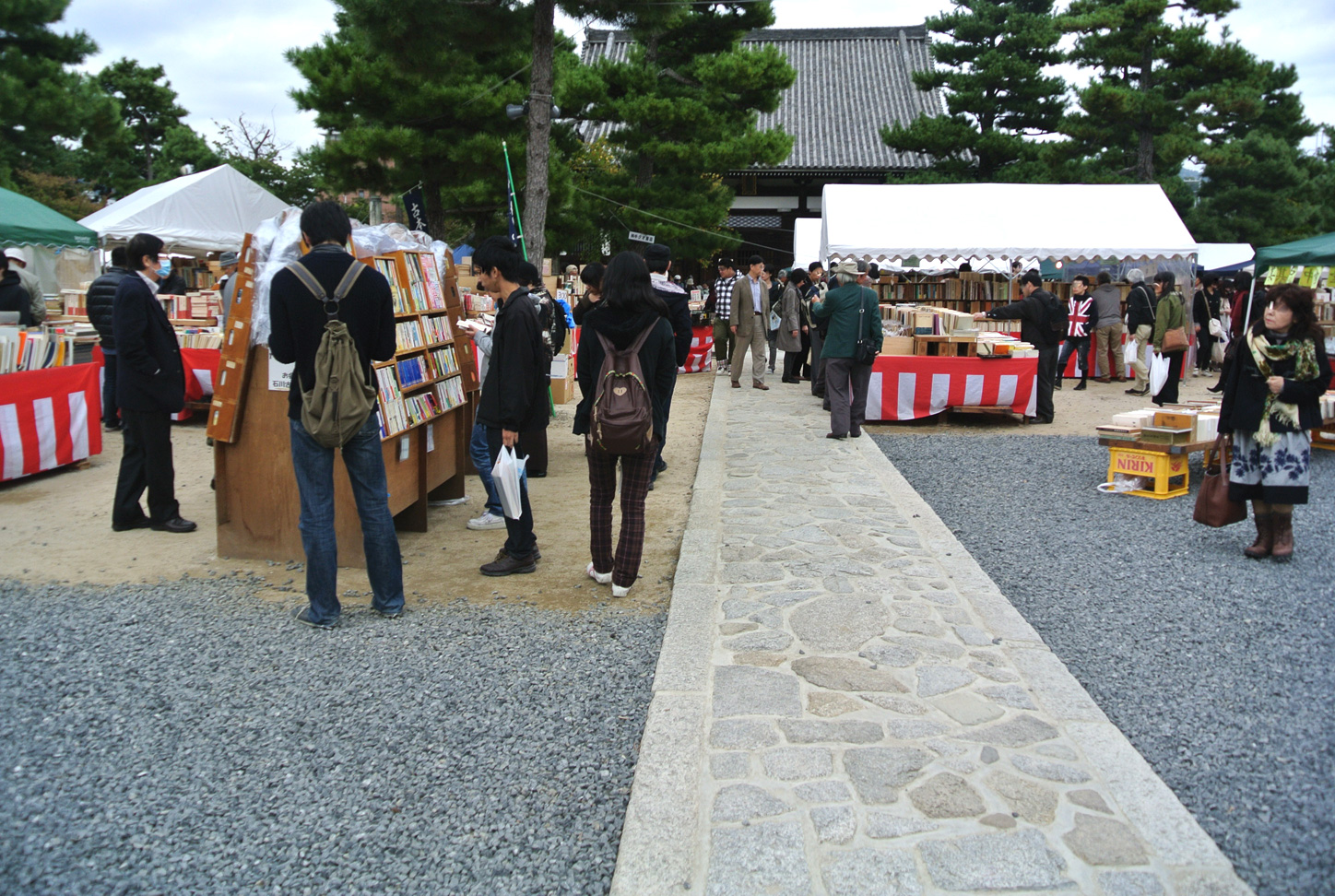写真 2012/11/04 第36回 秋の古本まつり-古本供養と青空古本市- 高校の頃の先生からお誘いがありまして 京都の知恩寺(ちおんじ)で行われている古本まつりに 連れて行ってもらいました。 購入した本はテクスチャ素材に使えそうなボロボロの本2冊。 虫食い、シミだらけで内容も全然読めないのですが 必要な部分だけスキャナで取り込んでグラフィックデザインに使いたいです。 印象的だったのは月刊漫画雑誌のガロが売ってたこと。 ねこぢる氏の作品が載っていたら絶対買っていたのですが 載ってなかったのと高かったので買えませんでした。 連載初期のキン肉マンが載ってるジャンプも売ってましたね。 超人レスリングの話じゃなくて町の平和を守る ギャグ路線まっただなかの頃のキン肉マンが載ってました(´ω`)