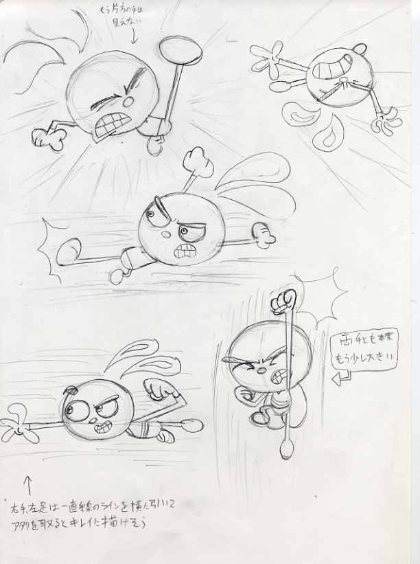 イラスト 2011/08/06 カートゥーン模写2日目 ふたたびイン・ヤン・ヨーの模写。 今回はあまり時間が無かったので少なめです。 今回模写した回はヤンがメインでややマジメなストーリー。 後半の格闘シーンがカッコ良かったです。 とっても良いポージングが多いので描き描き。 背景の効果線も重要なんですね。 倒れているシーン。 両足、胴体、両腕が床にぴったりくっついてるように見えないと たぶん不自然な絵になってしまう。 補助線の描き方がイマイチ解らないのですが一応引いてます。