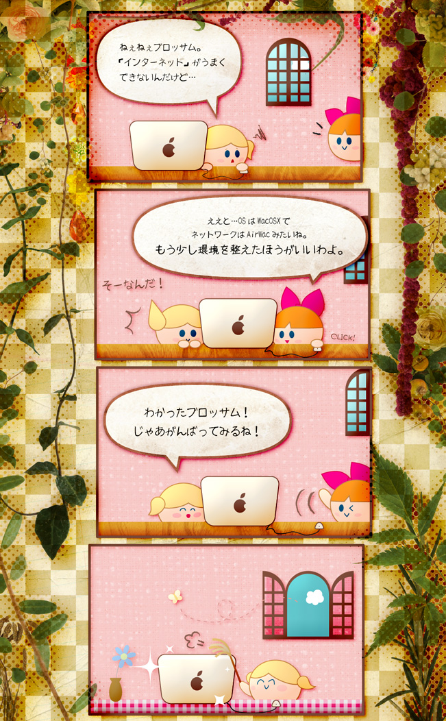 イラスト 2011/06/19 パソコン初心者バブ子 今回のイラストはサイズが大きいのでjpgです。 どうかクリック表示でご覧ください。 pixivにアップした方と違ってこちらはボツバージョン。 合計4パターン作ったのですが結局最後まで 良い配置が見つけられなくて全て中途半端な作品になってしまった。 一番の問題点は植物写真を上手いこと合成する方法が解ってないこと。 上手い事使えば凄く綺麗になりそうなんだけど 今の所少しも使いこなせていない。 できれば明日(時間的には今日だけど)は マジメな絵を描きたいです(つω・)
