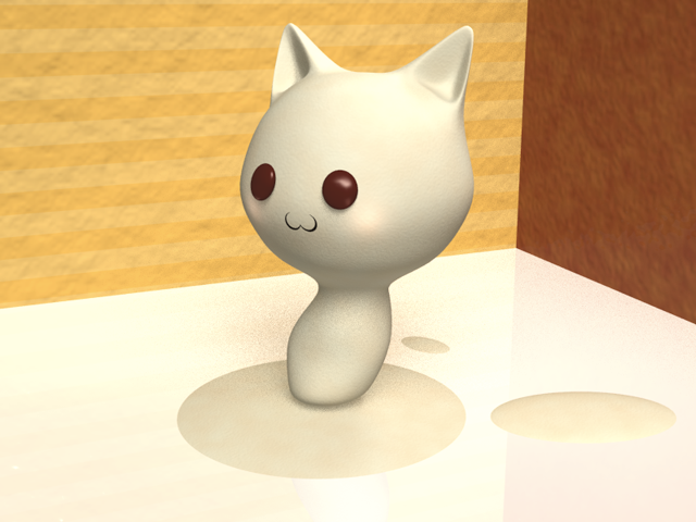 イラスト 2011/05/11 モデリング習作 3DCG制作ソフトがあるのにあんまし使ってない気がしたので Shadeでネコを作ってみました。 もともとはネコの頭にバカーカップが乗っかっていたのですが 時間の都合で消しました。 それと全体的にあんましにも微妙な出来映えなので pixivに投稿するつもりはなかったのですが 続けていくと成長過程が解るかも。と言う事で投稿しました。 Shadeでモデリングするの難しいわぁ(つω・) 以前メタセコでパワパフのブロッサムを作りましたが またカートゥーンキャラをShadeで作ってみたいです。