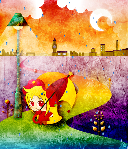 イラスト 2011/05/05 ぼんやりブロ子 おなじみ「パワーパフガールズ」よりリーダーのブロッサム。 こちらは加工する前。 ブロッサムの髪の毛部分ですが 最初ドレッドヘアーみたいになって結構苦戦しました(つω・) 描き始めた最初は100%ガーリーでかわいい要素しかないような 絵にしてみようかと思っていたですが Youtubeで聴いてた音楽の影響を受けて途中から加工時にしました。 これがその曲。 普段こんな雰囲気の曲は聴かないのですが、なんだか世界観にハマりました。 激しいワリにちょっと切ない感じ。 曲のタイトルを見て勝手に想像しただけですが 夢の中でも何かを切望してるような雰囲気がたまりません。 そんでもって加工後がこちら アナログ感を強くして切ないセピア調に。 今回は珍しく加工時に手作業で陰影や光沢をつけています。 普段は陰影を手作業で塗るのが面倒なので レイヤー効果の「ベベルとエンボス」だけでごまかしてます。 ブロッサムの手、前髪に光沢、 ブロッサムの前髪、頭の下に陰影をぬりぬり。 今回の反省点: ・途中からコンセプトを変えてしまった ・画面左のツタの形が汚くて単調 ・上部のテキスト周辺の茶色が色的にあわない ・ブロッサムのポーズが中途半端