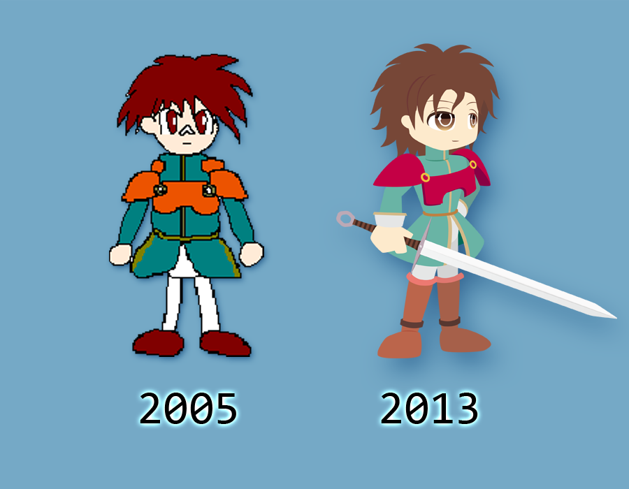 イラスト 2015/11/12 アレス ※今回載せてる内容は後から手直しするかもしれません 未完成だけど載せちゃうパターン。←追加修正済み オリキャラ絵。アンジェの手下第4弾でございます。 アレス。ポジション的には一応物語の主人公です。 ありきたりな名前でインパクトに欠けるので変えようか迷ってます……。 テオドールとは屋敷に勤める前からの友人で、よき相棒らしい。 主人公だけど最強でもなく、伝説の勇者でもなく、特別な血を引いてもいない。 最初はもっとイメージに近いおマヌケっぽい顔だったのですが、この頭身で 他のキャラと並べると一人だけギャグ要素が強すぎるので仕方なく変更。 カートゥーンっぽい( ・_・)←こういう点みたいな目がいいんだけどなぁ。 他にも、今までの服装がやや古い印象だったので現在服装をリメイク中です (けっこう原型が残ってる感じがするけど)。←追加修正済み 上の絵を見た感じだとある方が遊ばれてたゲームの影響が強いかな。 ↓ちなみに以前描いてたのはこんなの 2005年の絵、すごい短足だなぁ。10年以上前からいるキャラなのね。 そう言えばpixivで色々な人のオリジナルキャラを見てるのですが 仲が良すぎる兄弟姉妹のキャラが異様に目につきますね(いわゆるブラコン、シスコン)。 なんでだこんなに多いんだろ。私のオリキャラではそういうのは居ないかな。 他にも『左寄りの両利き』とか『両親は既に他界している』とか 『一方的に好意を持たれてるが、鈍感で本人は気づいてない』とか見かけますね。 ありきたりな設定は極力避けたいところ。