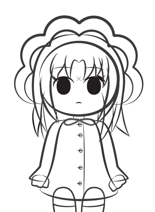 イラスト 2010/12/27 アンジェ オリジナルキャラクターのアンジェ 描き始めた当初はポップ調に描こうと思っていたのですが 何故か途中からガーリー調に変わってしまった。 ちなみに色を塗る前はこんな感じ 反省点は服の下半分の形が平面なこと。 もう少し丸みというか厚みがあった方が良かった。 なんだか腰が無い人間にも見える 実際に腰は下書き段階でも描いてなかったもんなぁ