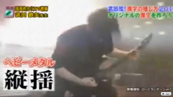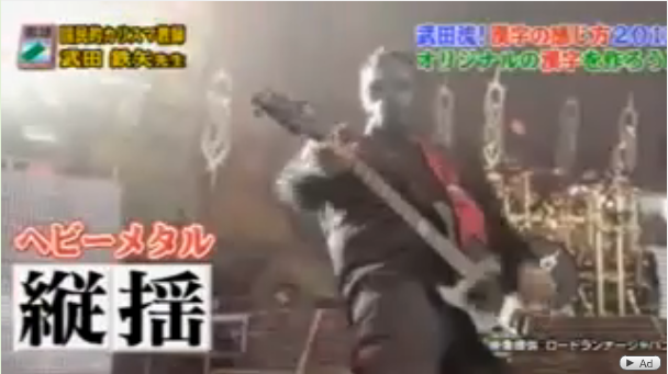 日常生活 2011/01/16 「世界一受けたい授業」にSlipknotが 「 世界一受けたい授業」でSlipknotが写ってたらしいです。 番組が始まって大体1時間ぐらいしたら武田鉄矢先生が 「自分で漢字を組み合わせてオリジナル熟語を使ってみましょう」ってコーナーが。 誰か知らないのですがお題に「『縦』に『揺』れると書いてヘビーメタル」 って答えているシーンで一瞬ですが画面に大きくミック先生、ポール、ジムが写ってました。 ただそれだけです。 某掲示板で取り上げられていたものの証拠が無くて気になってました。