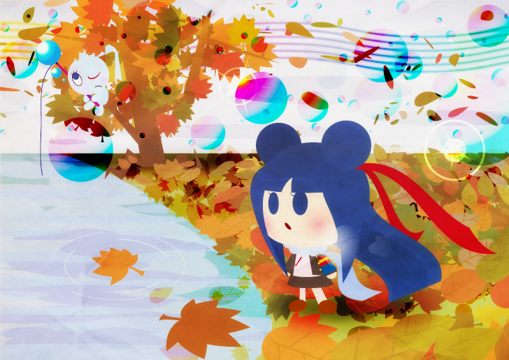 イラスト 2010/11/01 秋の湖 部活用に描いたイラストです。 「秋」をテーマにイラストを描いてくるというお題でした。 なんだかカラフルな秋。2体ともオリジナルキャラ。 こおなご(右下のキャラ)が着ている服はLovers in japanのPVでクリスが着ている 服だったりします。腰から下も似せてズボンにしてもよかったのですが 以前にも似たような服装を描いたのであえてスートにしています。 質感を出そうと紙のテクスチャを最初3枚使っていましたが なんか見えにくくなるので枚数を減らしました。 なんでも付け足せば良い訳で無く最終的に綺麗に見せようと思うと 色々な不要な部分も消さないといけないのかも。 特にPhotoshopのフィルタにハマり始めた最初は 無駄にフィルタばかり使っていたような。