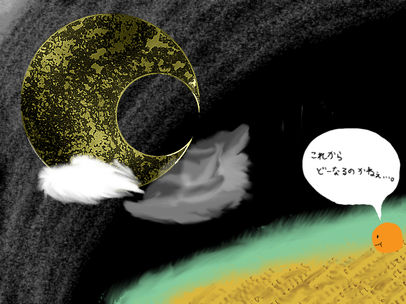 イラスト 2009/02/28 月夜 ブログ全体を見てたら兄貴とサティおじさんの絵だけで 何とも言えない男らしいブログに豹変していたのでちょっと雰囲気変えます。 珍しい描き方をしてみました。 トレーシングばかりのパクってばっかりの絵だったので 何も見ずに何かを描こうと思ったらこうなりました。 描きながら聴いていた音楽に9割ほど影響されたかも。 けどあんまり他の絵とかかった時間変わってなかったり…。 しかし最近何が起こるか解らない世の中になりましたね。 大学に受験して受かったり兄貴が来日したりありえもしない出来事が普通のように起ってるような…。 わざわざ夜を照らしてくれる月も本当は結構黒いのかも。 月の光に見とれて気付いたら崖から滑り落ちてないかなぁ…。な絵です。