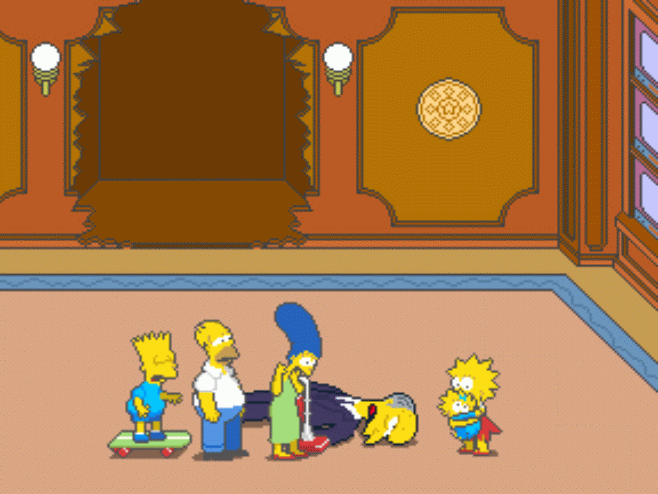 ゲーム 2008/09/07 シンプソンズのアーケード シンプソンズのアーケードをリサでクリア。 細かいところがシンプソンズファンを喜ばせる内容です。 ヒバート、クラパーベル先生、カール、レニー辺りは見た記憶無いのですが その他レギュラーキャラは殆ど出てますね。 難易度としてはファイナルファイトに比べたら難しいですね…。 説明とかコツとか何も解らないのでかなり構時間かかりました。 ハメ技的なものも見つからないのでボスは密着して殴り合い。 しかしファンの自分なら10回以上ミスしても十分楽しめました。