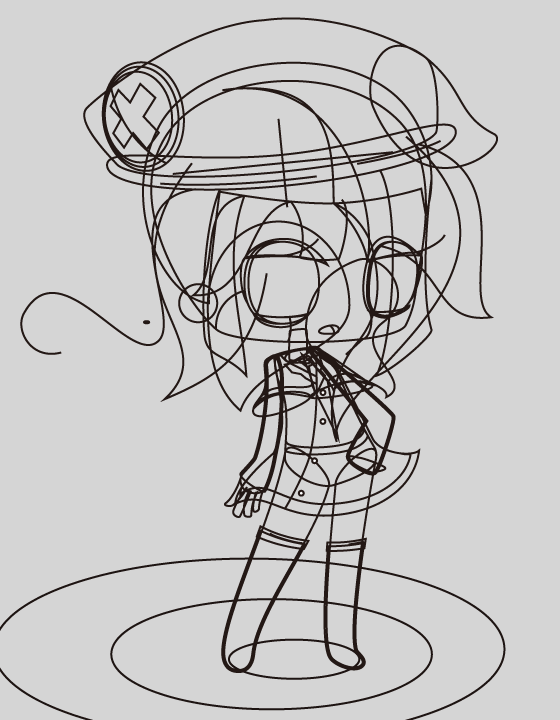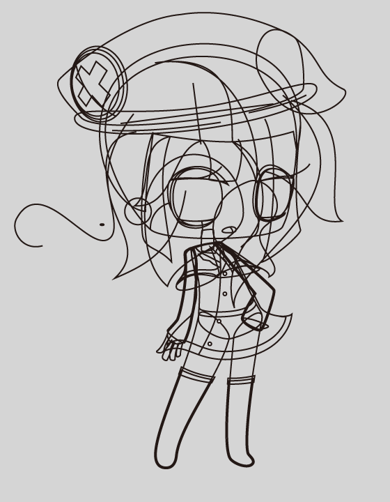 Illustrator 2013/12/26 Illustratorでのキャラクターを描き方 ワリマルでござーいー。 クリスマスも終わっちゃいましたね。 皆さんいかがお過ごしでしょうか。 最近久しぶりにこのブログのアクセス解析を見たのですが 私が思ってる以上に人に見て頂いてたようでビックリしました(°ω°*人) あらためてご覧下さってありがとうございますだ。 そんな訳で今回はIllustratorでのキャラクターメインキングを書いていきます。 あくまで自己流でございます。 ※文章を追加&修正しました(2016年2月21日) ■手順1:体のパーツを大まかに配置 こんな感じ。左が実物で右はアウトラインです。 体のどのパーツをどこに配置するかをおおまかに設定します。 ここで色を決めてしまうと見え辛くなることもあるので あえて色は設定してません。あと、ポージングもここで決めてしまいます。 ポージングに関しては版権アニメのPanty&Stockingの資料画を参考にしてます。 ちなみに参考にしたのはパンティさん。 手はPOSEMANIACSさんの手ビューワを参考させていただきました。 楕円形ツール(ショートカットキー:L)や長方形ツール(M)で 大まかな形を作って、ダイレクト選択ツール(A)で形を整えて 自分の理想の形に近づけていくパターンがオススメです。 この事は後述しますが、とにかく楽に綺麗な形が出来ますよ。 ■手順2:目を描く 顔パーツをおおまかに決めます。 デフォルメの強いキャラクターなので目を大きくして やりすぎなほど位置を思いっきり下にしてます。 目の位置を下にするほど幼くて可愛らしい顔になります。 現実ではあり得ないけど目の下先が口の上先と並んでるのが好きですね。 ちなみに目は… こんなあんばいで出来てます。 上まぶたと下まぶたがあるのがポイント。 まぶたは白目と瞳を隠すために配置してるのですが 場合によってはCtrl+7(Macでは⌘+7)のクリッピングマスクを使っても いいのです。ただ、こちらはちょっと手間がかかりますけども。 ■手順3:生え際を描く 生え際の位置を決めます。 上の画像では線データになってますが実際は塗りとして使います。 生え際ゾーンを描く際はパスファインダーを使うと楽です。 これの「形状モード」のところね。 あと、目の位置をさらに下げました。 ■手順4:髪を描く 髪を描きます。こちらは細かい作業なので主にペンツールで描いてます。 アンカーポイントは出来る限り少ない方がキレイになります。 他にも以下の変更点があるだよ ・首、肩幅、腰が狭くなった ・右手が長くなった ・両足を左方向へずらした ・腰の位置を高くした 専門的な話ですが髪の毛を描く際にIllustratorのバージョンがCS5以上の人は 「可変線幅」を利用すると楽に髪の毛が描けます。 CS4以下の人は自分でブラシを作成するという手もありますね。 ■手順5:微調整 服の色をだいたい決めます。 足、髪を微調整。ほとんど変ってない……。 ■手順6:帽子を描く 帽子、ほっぺの赤みを追加。髪型を微調整 ほっぺの赤みはクリッピングマスク(Ctrl+7)を使ってます。 本来、ほっぺの赤みが目に被ってしまうのは 赤みを目の背面側に移動させれば大丈夫なのですが、今回は 下まぶたがあるので目の前面に配置する必要があります。 ■手順7: ブーツを追加。 ブーツを描く際には足を選択して「パスのオフセット」を使うと 結構簡単に描けます。 これね。 「パスのオフセット」はオブジェクトを選択してないと使えません。 ブーツを描く場合は足を選択しています。 他にも帽子の角度を微調整しました。 ■完成!: 陰影、光沢、帽子の位置などの微調整を行って完成です。 これらをPhotoshop用のPSDという拡張子のデータに書き出して 加工したりすることが多いです。 ■TIPS 線は基本的にペンツールより楕円形ツールか長方形ツールをメインに使います。 これね。 ペンツールを使わない理由は単純にこっちのツールの方が 楽だというのもありますが基本図形を崩していく描き方の方が 形が整い易いのでオススメです。ペンツールで1から形を作ろうとすると イビツな形になってても中々描いてる本人が気付けないことがあります。 ひょっとしたらデッサンが得意な人やアナログに慣れてる人は ペンツールでもイイかもしれませんが。 ■ボツ案: 男性っぽい服装を目指したものの断念。 可愛さを控えめにしてアーミーっぽさを強調するために ズボンにした。トップスがズボンと全然合わないので断念。