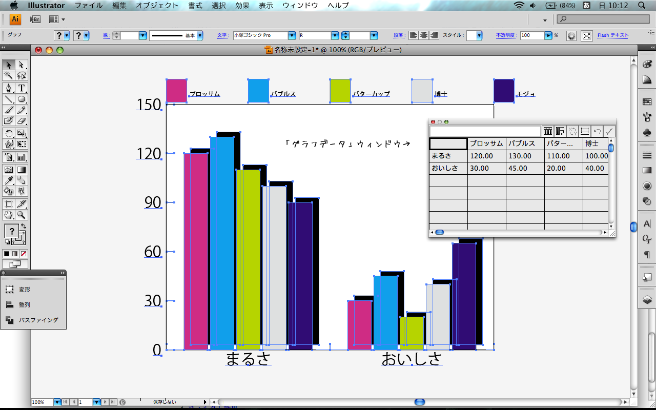 そのデータを入力するウィンドウが「グラフデータ」のウィンドウです。